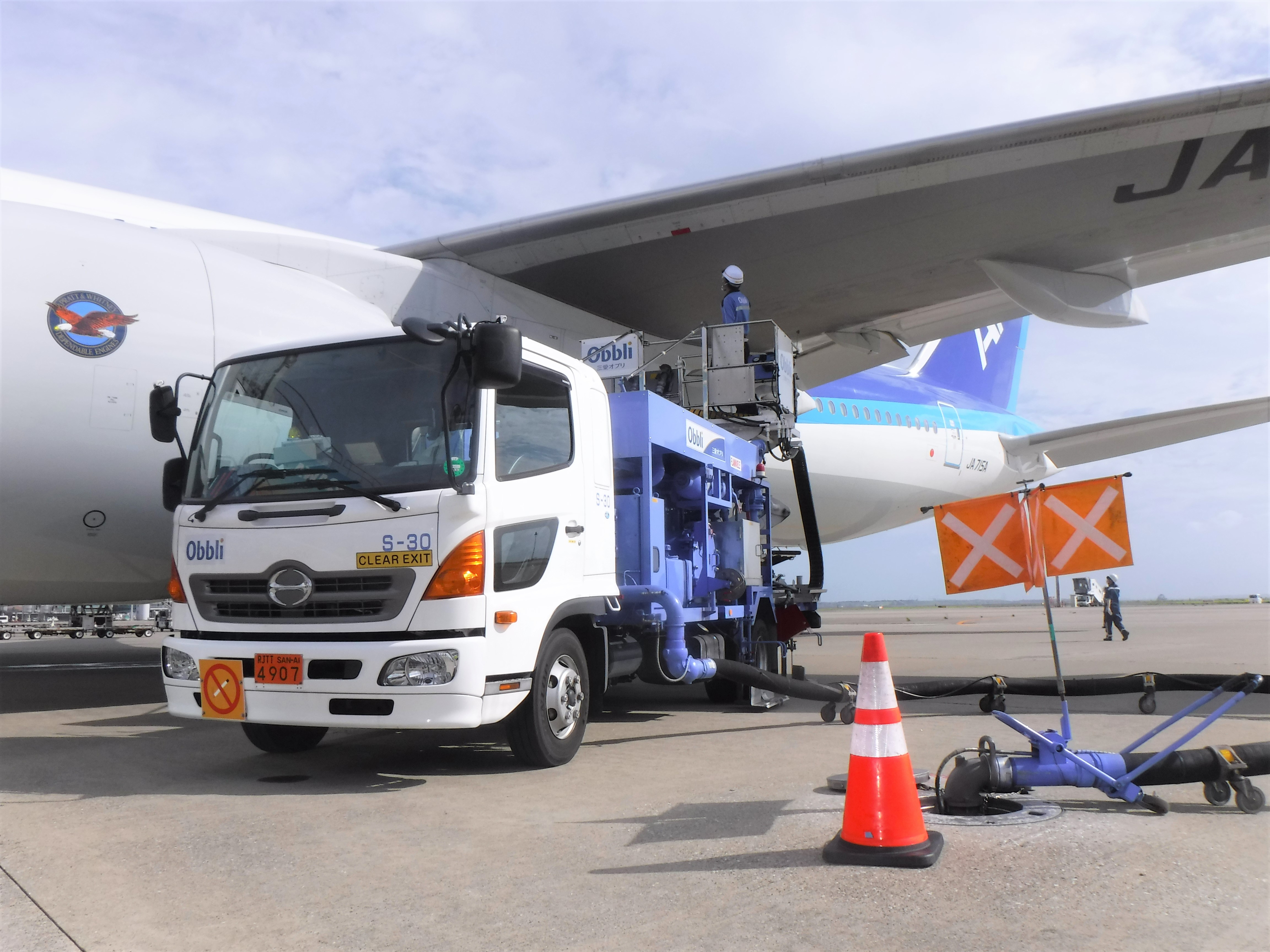 1955年、三愛オブリは日本初のハイドラントシステム(地下パイプラインで航空機まで航空燃料を圧送するシステム)による航空機への給油業務を開始しました。